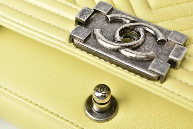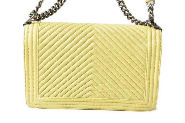 CHANEL ボーイシャネル シャブロン ラムスキン イエロー アンティーク調