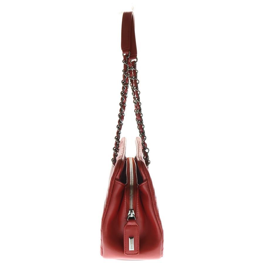 Chanel Chain Shoulder Bag Handbag Red Coco Mark Lambskin V-Stitch Silver Hardware - Red