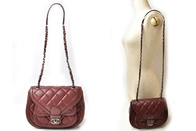 CHANEL サドルバッグ ラムスキン マトラッセ/キルティング ボルドー