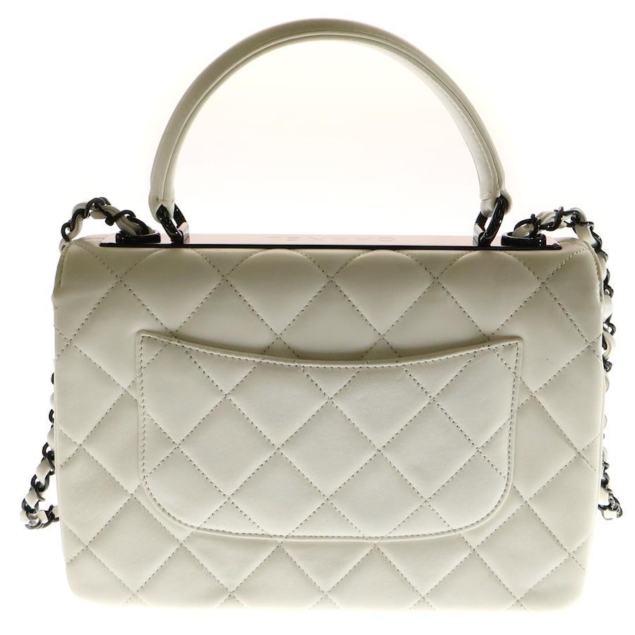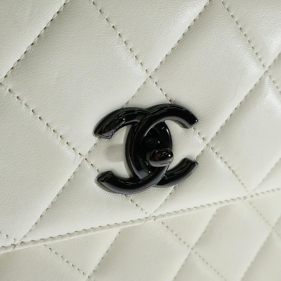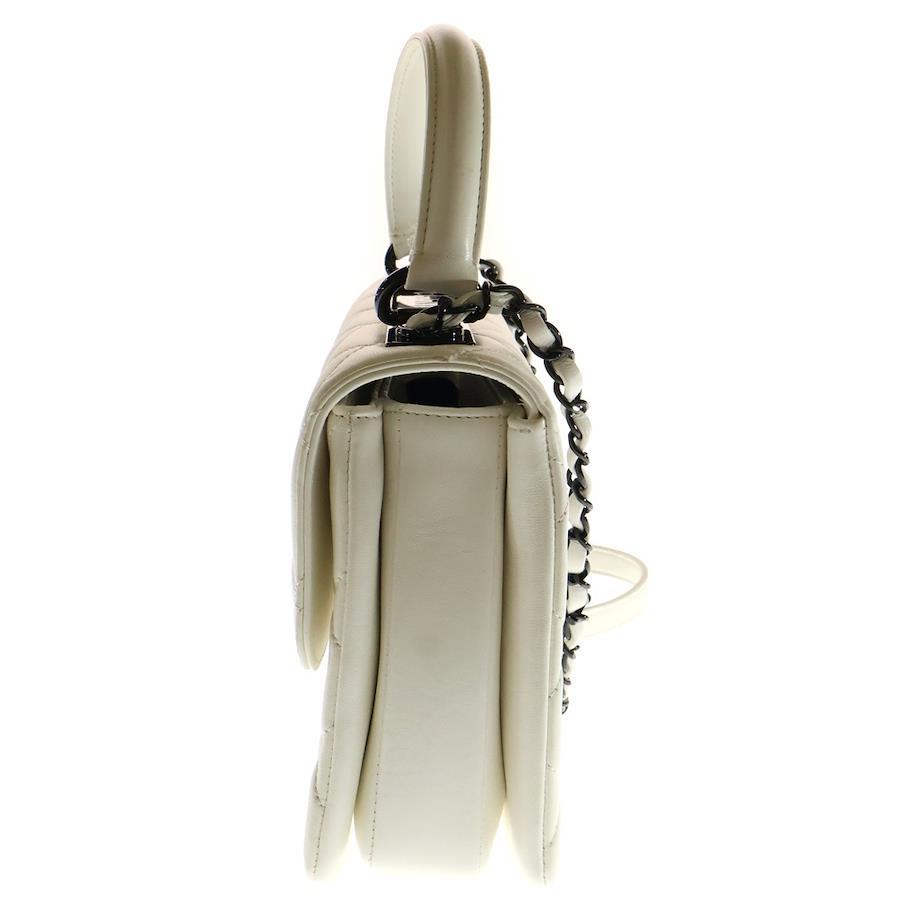 [モデル]トレンディCC トップハンドル 2WAY ショルダーバッグ ハンドバッグ ホワイト ラムスキン ブラック金具 A92236
