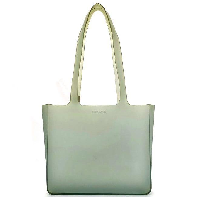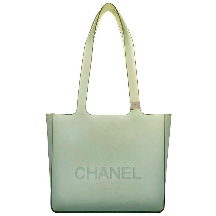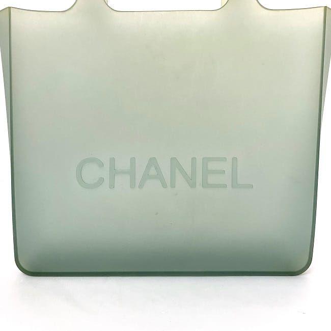 CHANEL Tote Bag Green Good Condition Mini Logo Rubber Used CHANEL Shoulder Rubber Tote Light Clear Classic Popular Women Ladies Simple