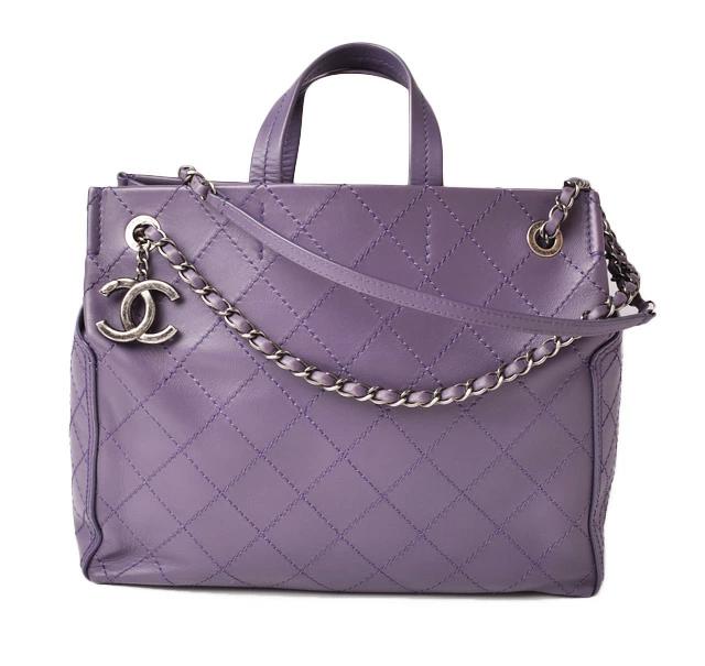 CHANEL チェーンバッグ キルティングステッチ パープル/ガンメタル