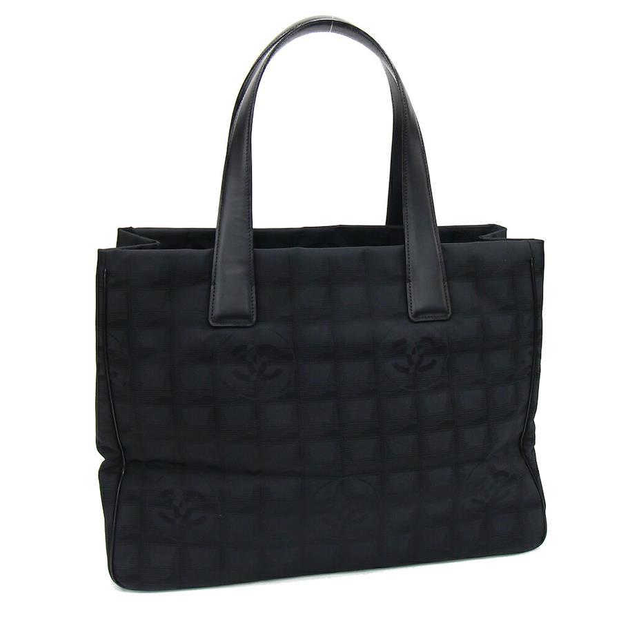 シャネルトートバッグニュートラベルライントートMMA15991ブラックナイロンキャンバスレザー中古レディース女性肩掛け通勤通学CHANEL