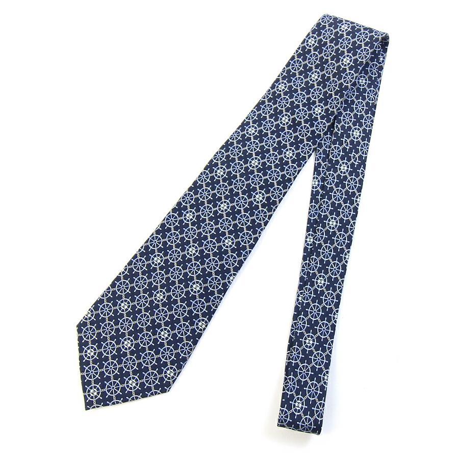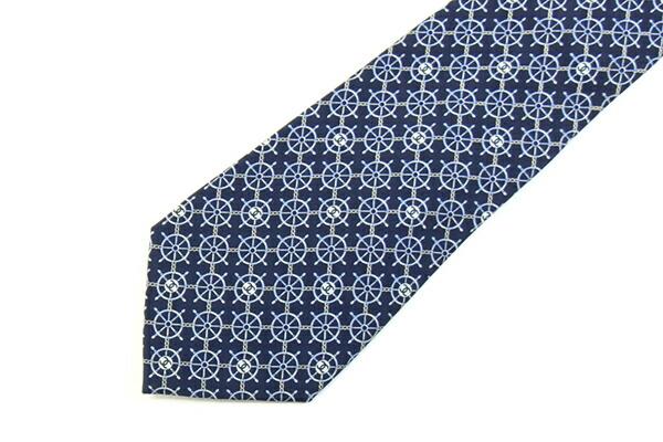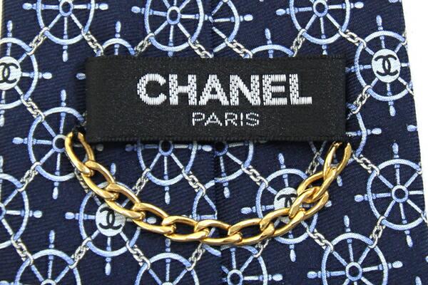 シャネルネクタイネイビーシルク100%中古スーツビジネスファッションメンズヴィンテージココマークチェーンハンドル舵輪CHANEL