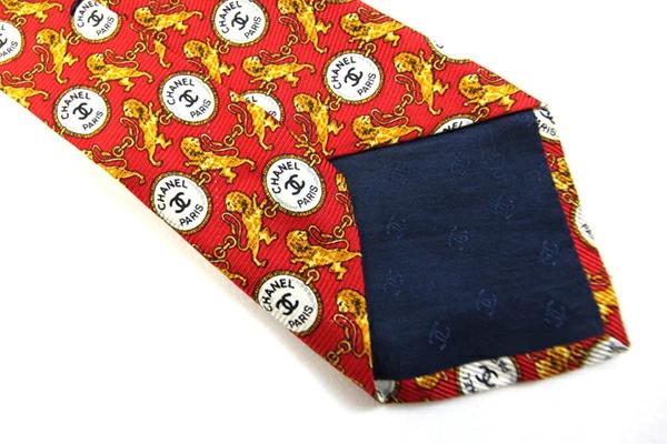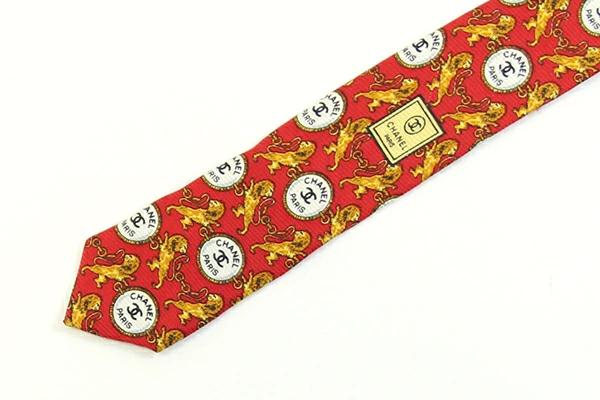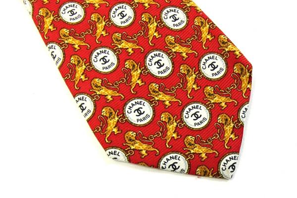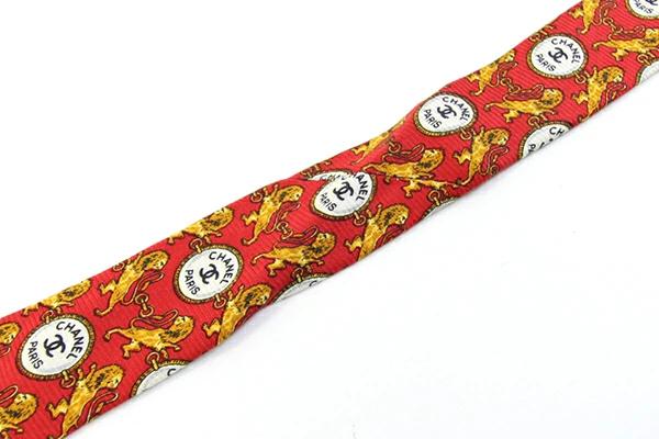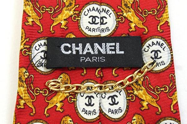 Pre-owned Chanel tie, red silk, Coco mark, vintage, for men's suits and business fashion.