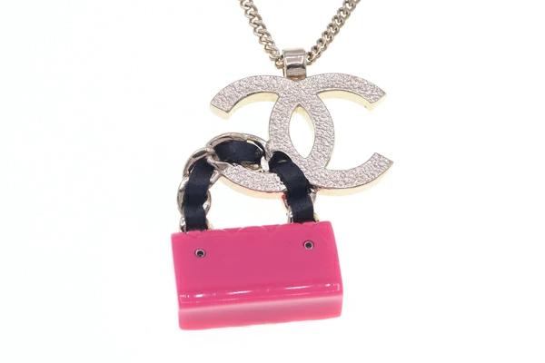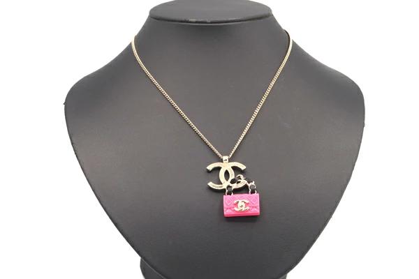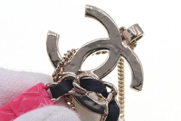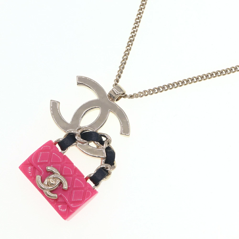 Chanel Coco Mark Bag Motif Necklace ABA013 Champagne Gold and Pink Metal B23C 2023 Model Pre-owned Accessory Pendant Quilted Matelasse Women's CHANEL