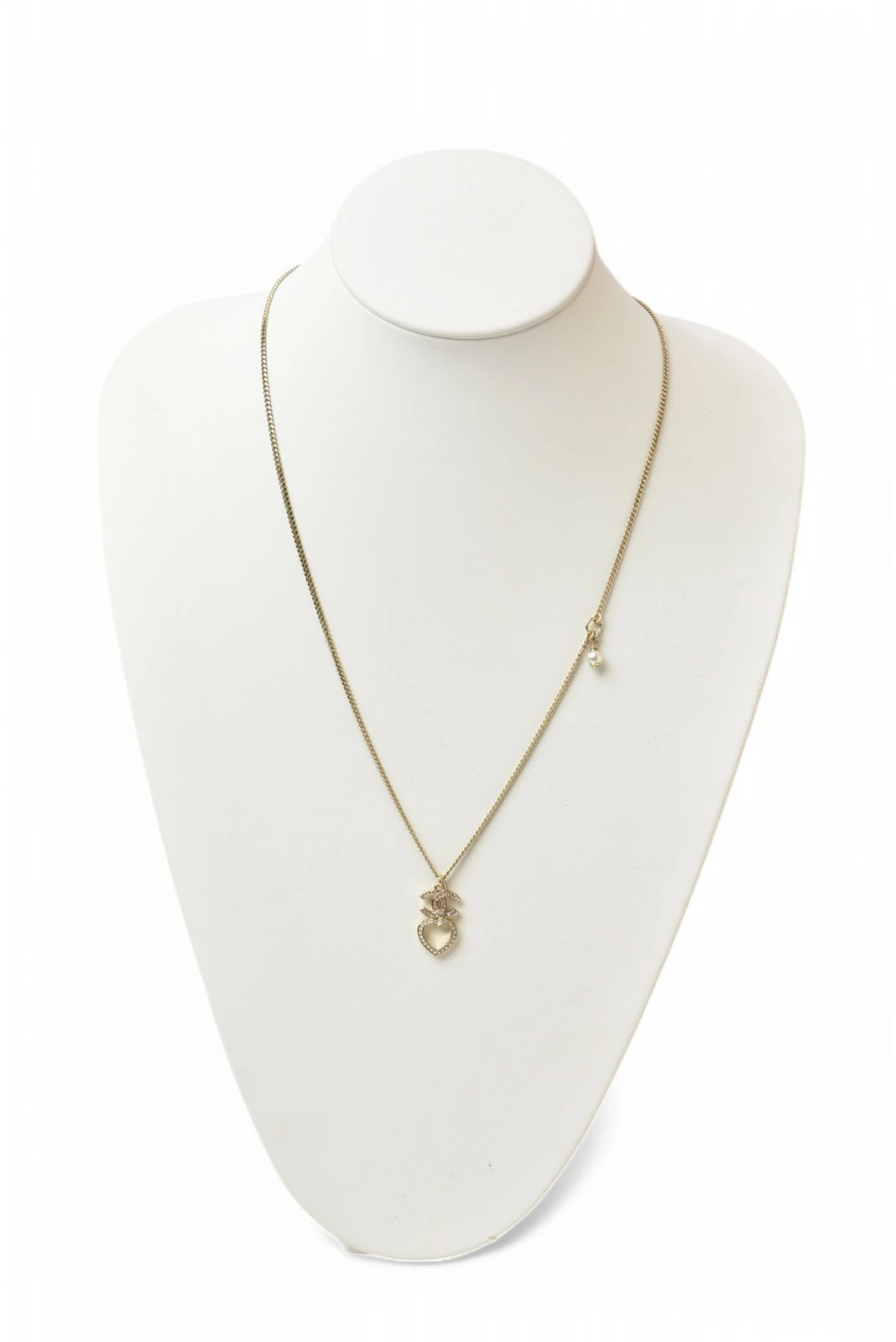 商品説明 | シャネルより、ココマーク/ハート/パールがモチーフのネックレスです。ラインストーンが散りばめられ、高級感が漂せます。チェーンは2段階に調節ができ、ハイネックにも合わせやすいデザイン!スタイルに合わせて、長さを調節できますので、ワンピース、パーティーシーンなどで、大活躍しそうです。 |
