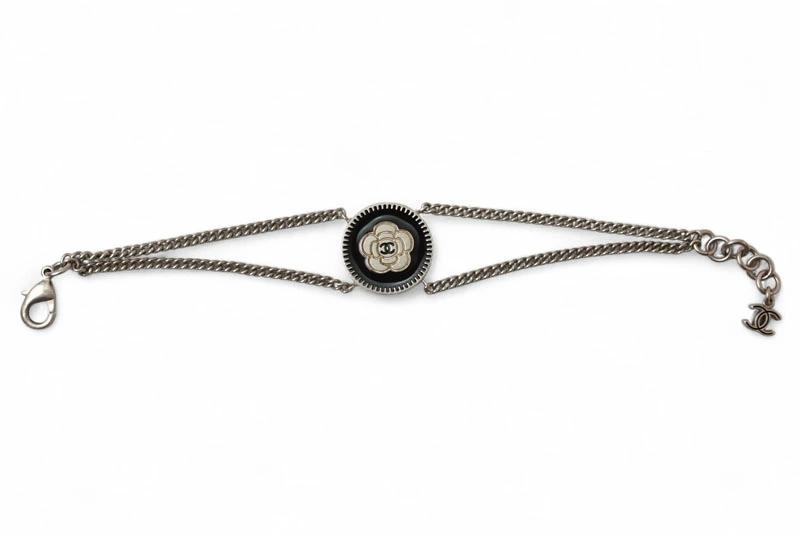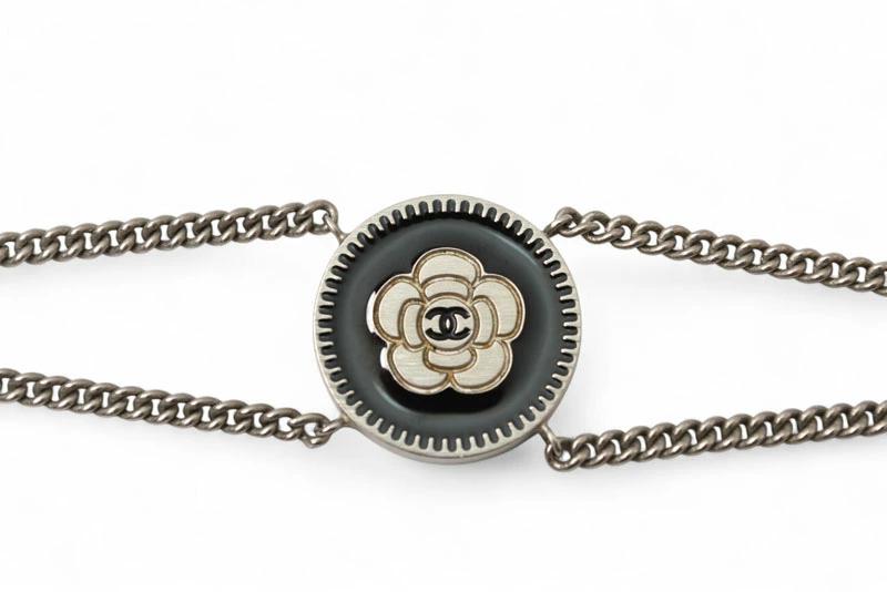 商品説明 | シャネルより、ココ/CC/ハートがモチーフのバングル/チェーンブレスレットです。優雅なカメリアとアイコニックなココマークが共演する、シャネルならではのデザイン。 シャネルを象徴するココマーク(CC)とカメリアモチーフを組み合わせた、エレガントなデザインのチェーンブレスレット。メダリオン調のチャームが手元でリズムよく揺れ、シルバーカラーの輝きが洗練された印象を引き立てます。さりげなくも存在感のある一本で、日常にも特別な日にも華を添えるアクセサリーです。 |
