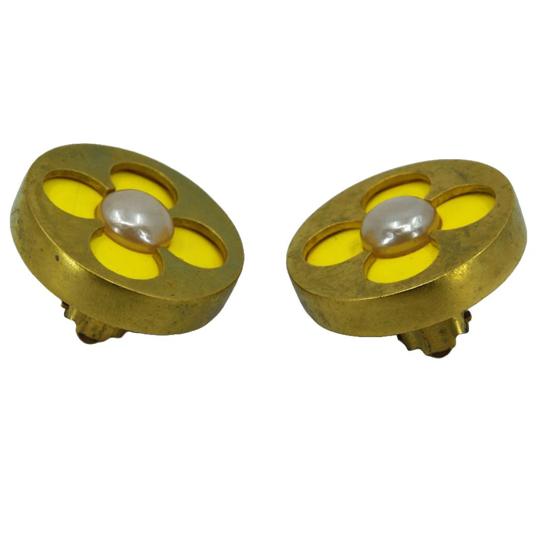 | アイテム名 | 【中古】シャネル ビンテージ イヤリング イエロー 四つ葉パール |