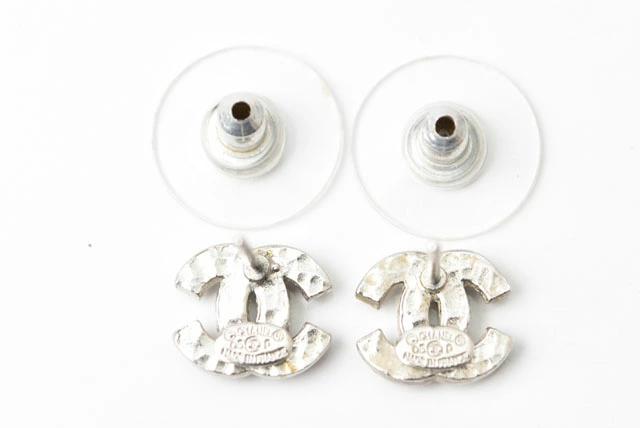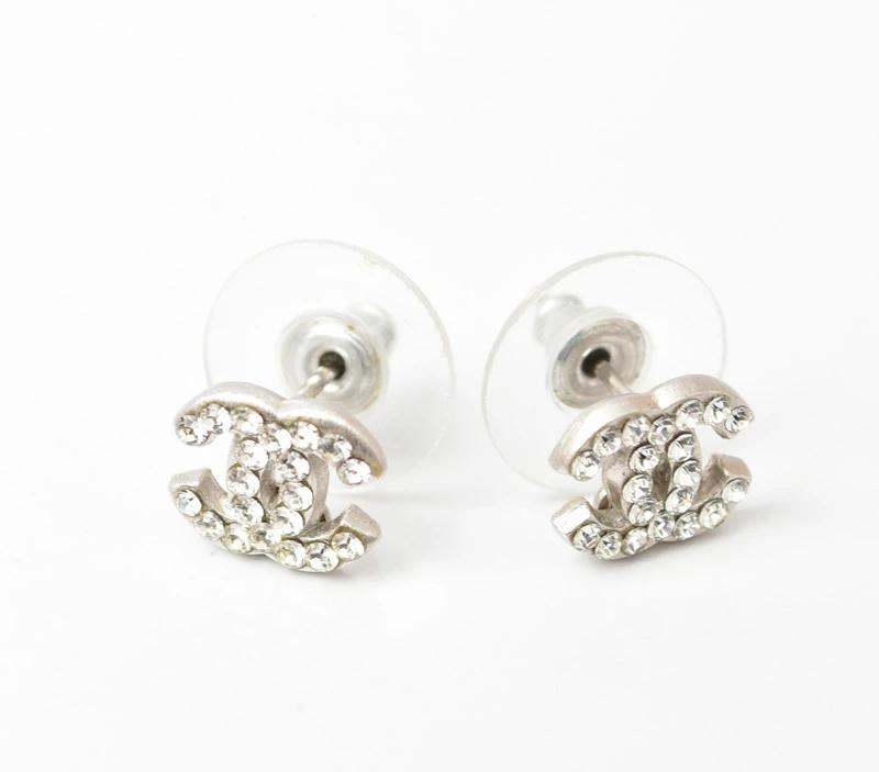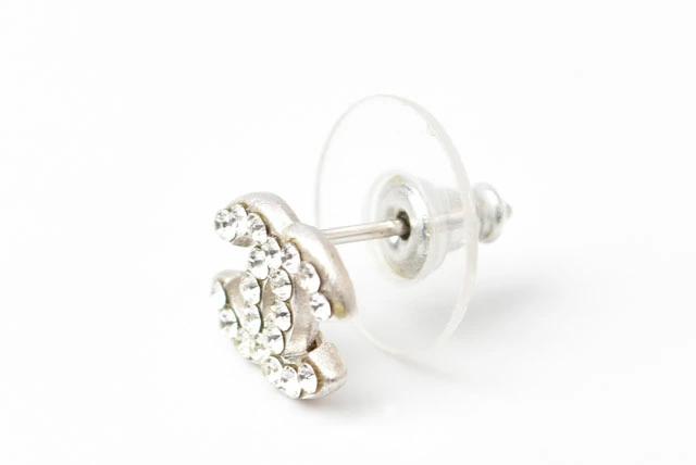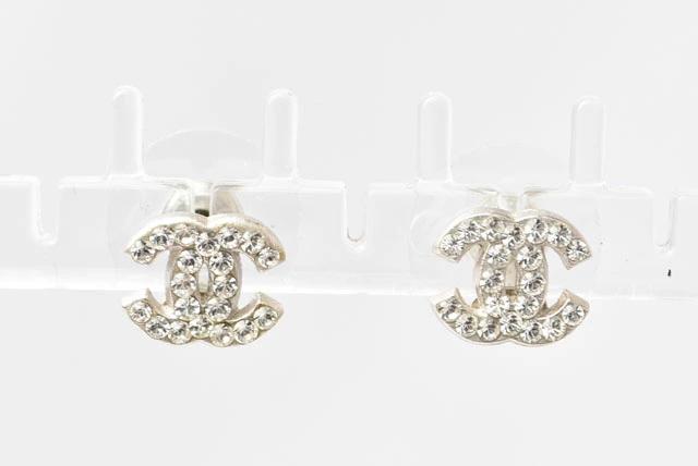 CHANEL ピアス CCマーク ミニ ラインストーン シルバー 幅0.9cm