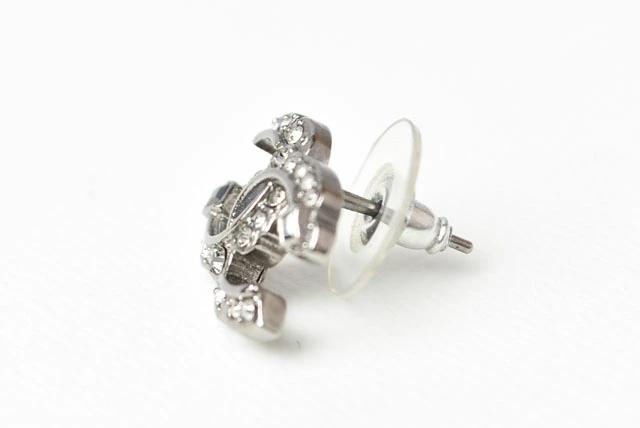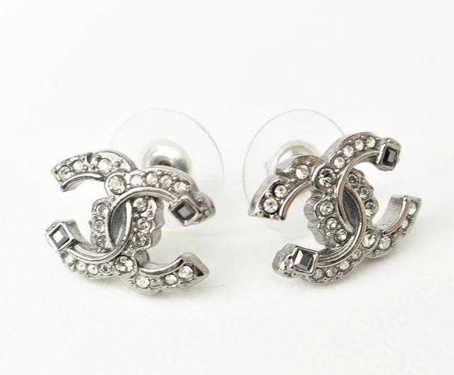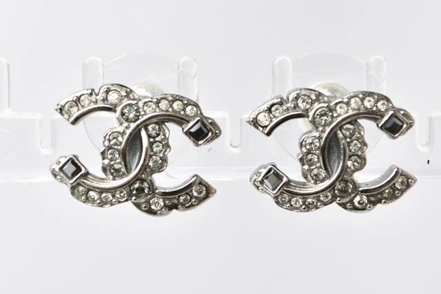 CHANEL ピアス ダブルCCマーク ラインストーン シルバー