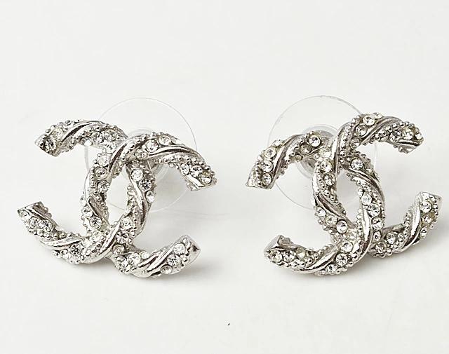 CHANEL ピアス CCマーク ラインストーン シルバー