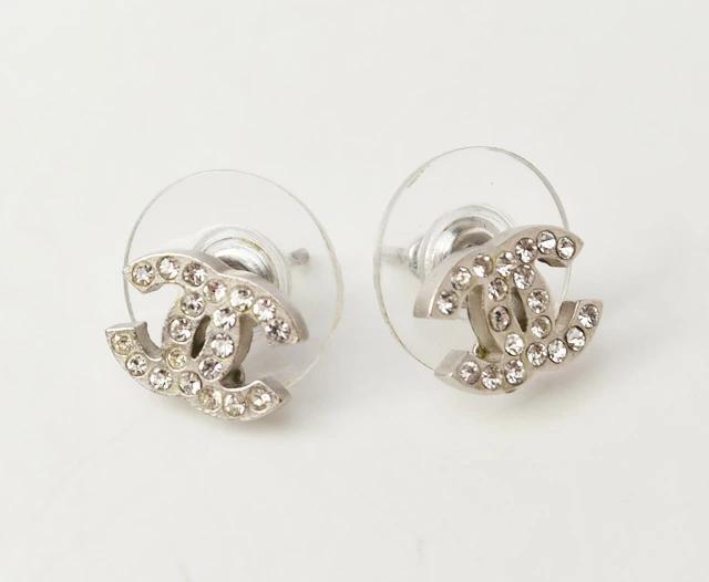 Pre-owned CHANEL earrings with CC mark and rhinestones in silver
