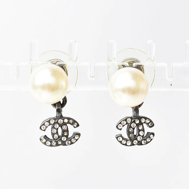 CHANEL ロゴ/CC ラインストーン パール/スイングココマーク ガンメタル