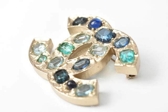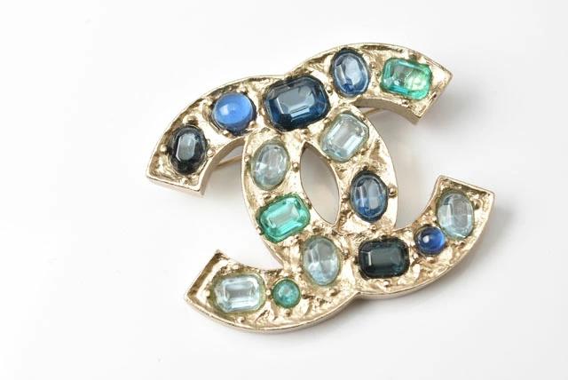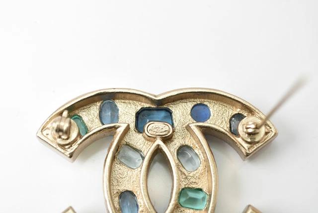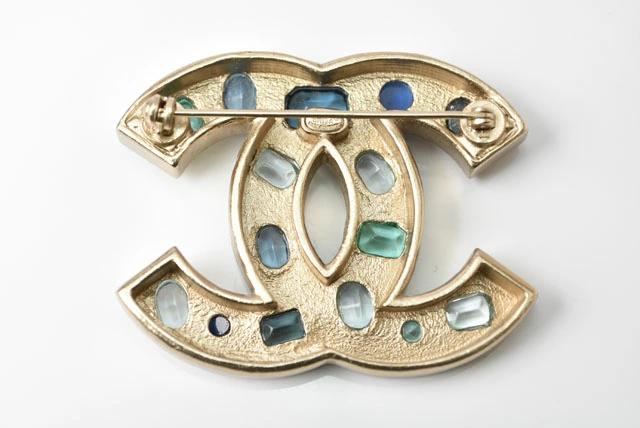 CHANEL ピンブローチ ココマーク/ラインストーン ブルーマルチ/ゴールド