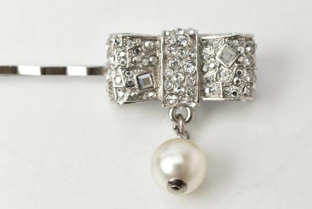 特徴 シャネルより、リボンがモチーフのヘアピンです。キラキラ光るラインストーンとパールで華やかな印象に。パーティシーン、普段使いにもアクセントにオススメです。