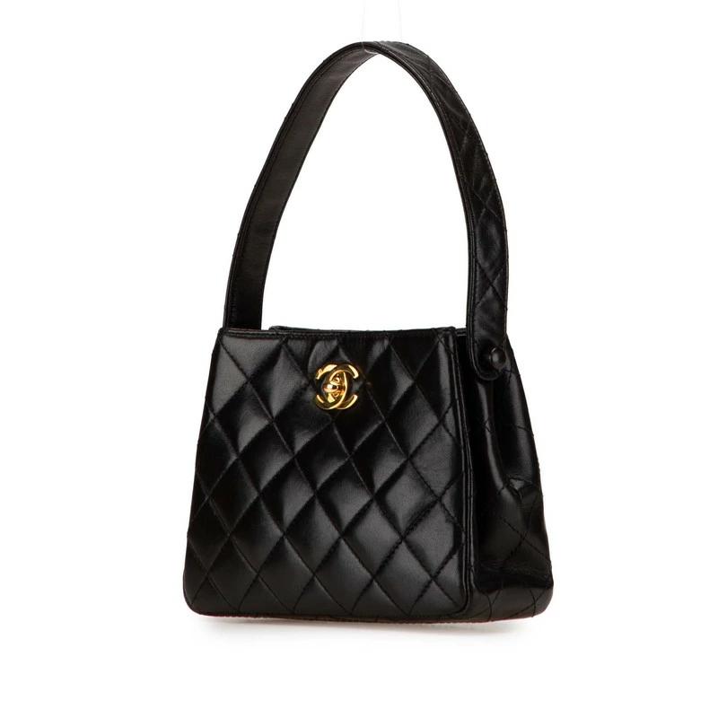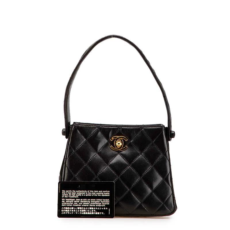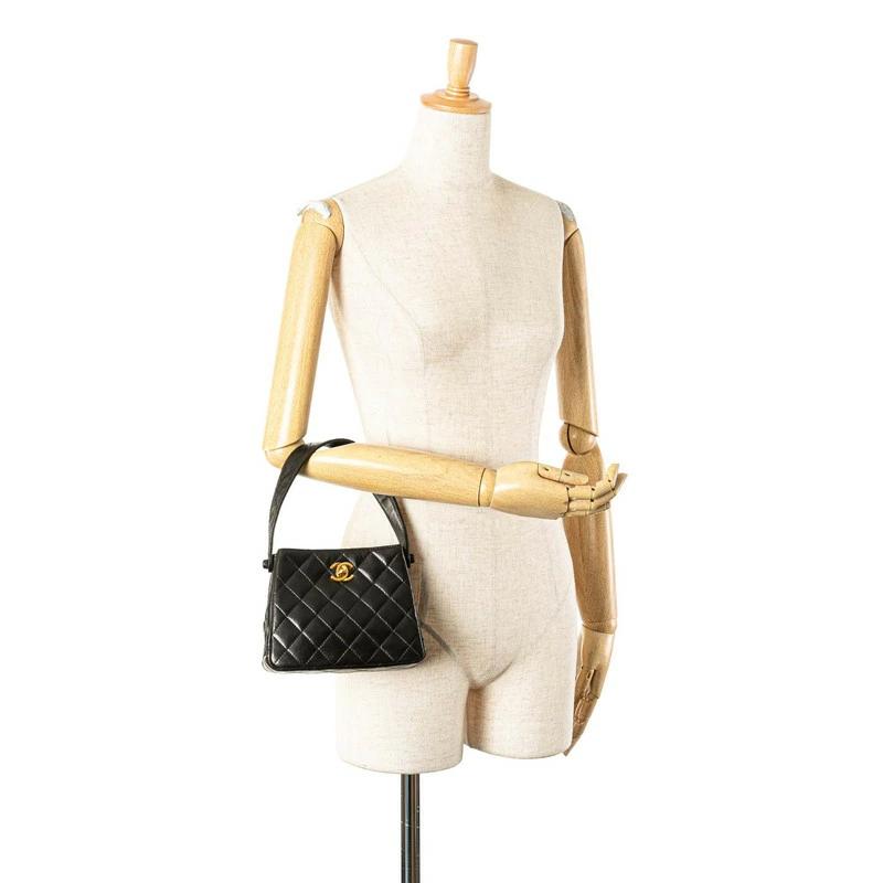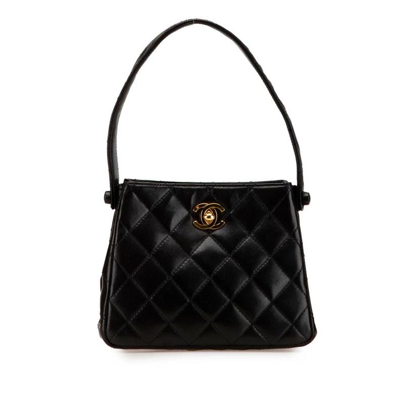 Pre-owned Chanel Matelasse Coco Mark Mini Handbag in Black Lambskin. Women's.