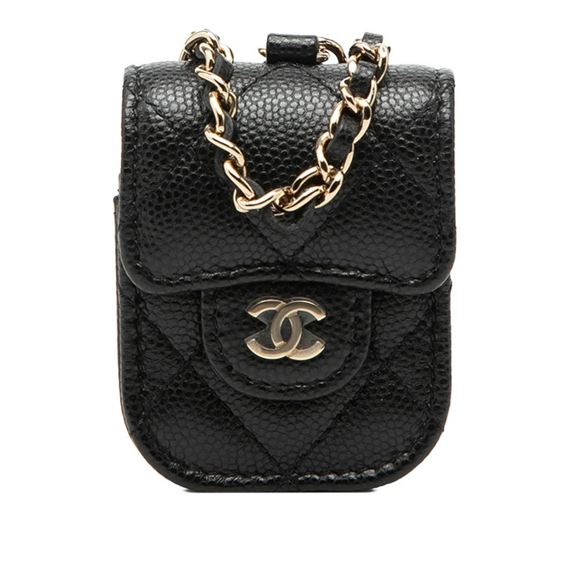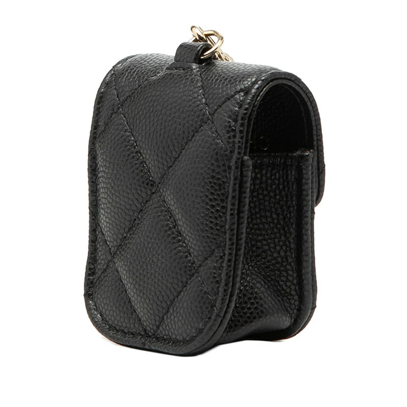 - シャネル マトラッセ ココマーク AirPods エアポッズ イヤホンケース チェーン ショルダー ブラック キャビアスキン レディース CHANEL 【中古】