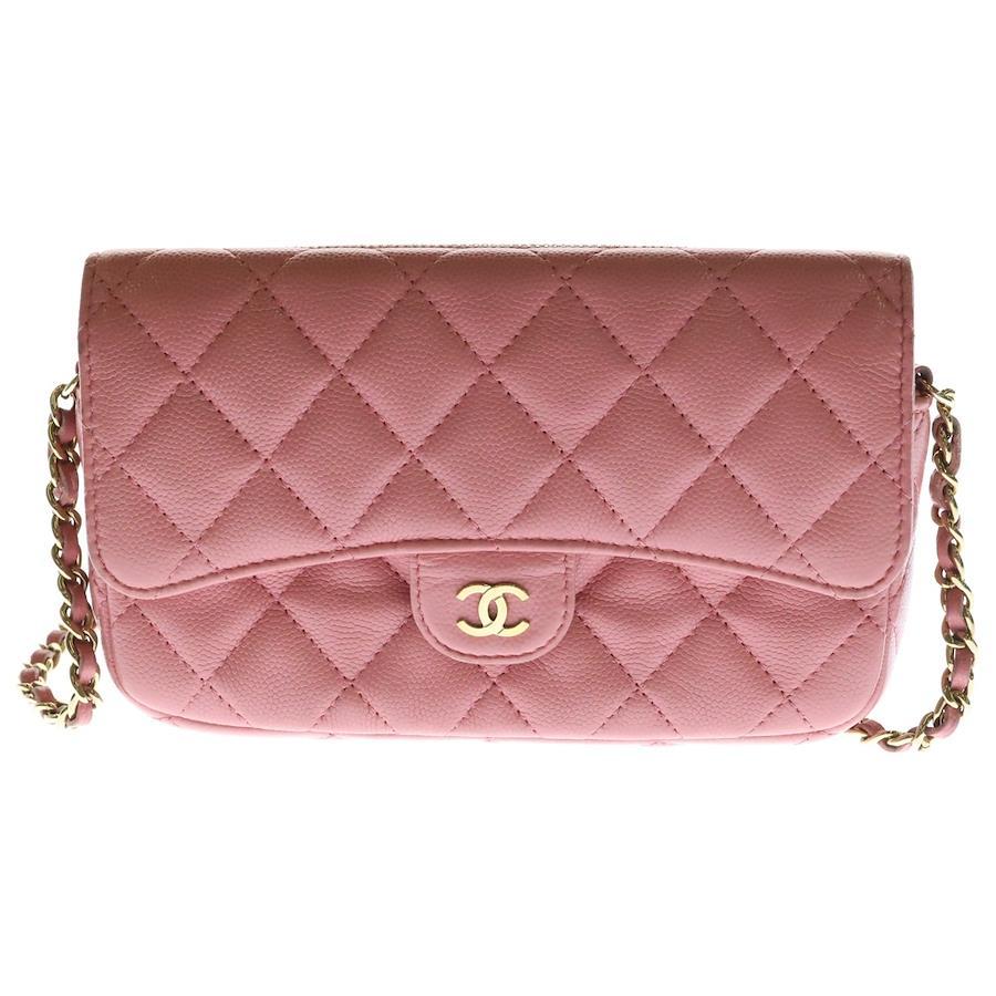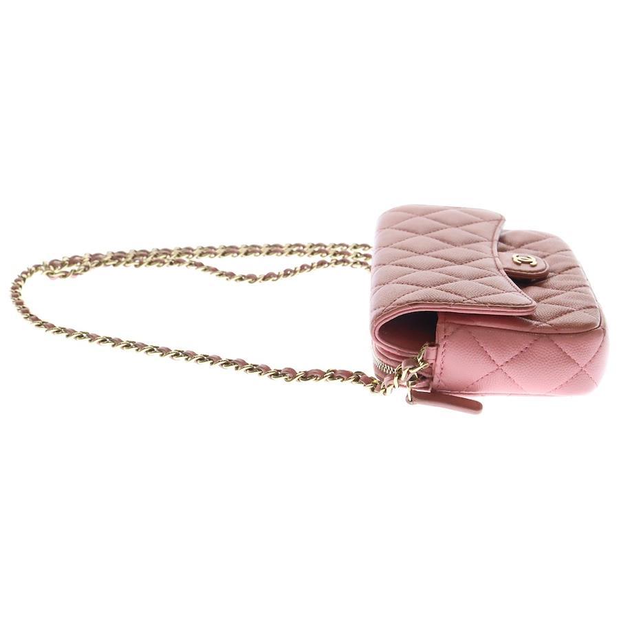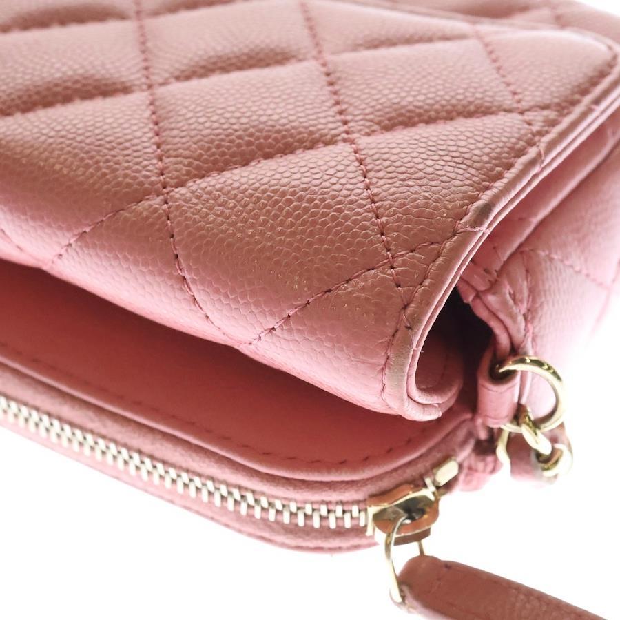 [モデル]マトラッセ フォンケース チェーンウォレット ショルダーバッグ キャビアスキン ゴールド金具 ピンク AP2096