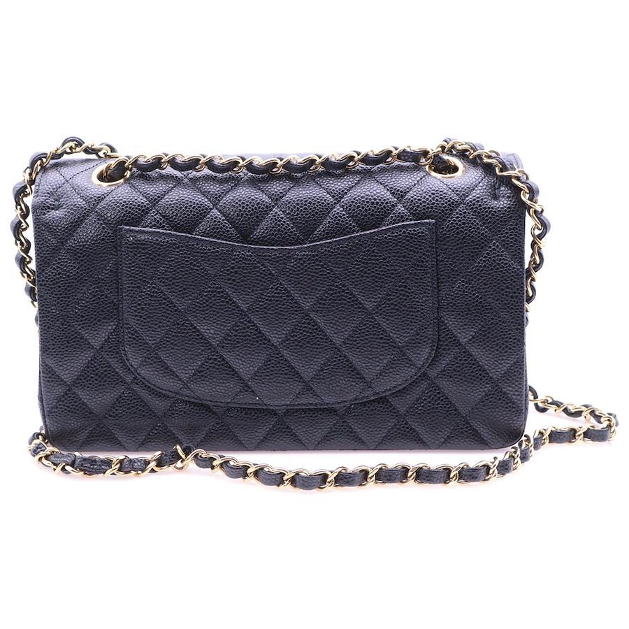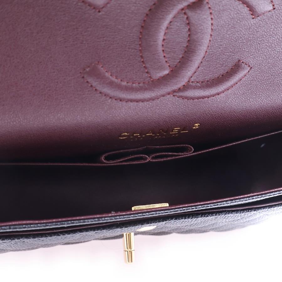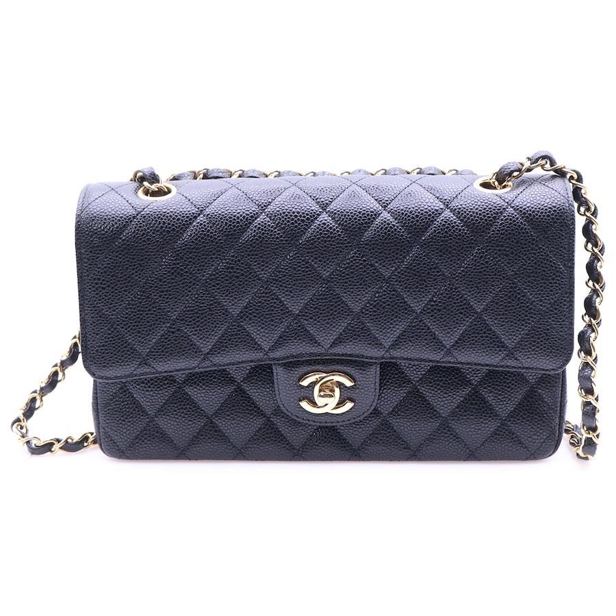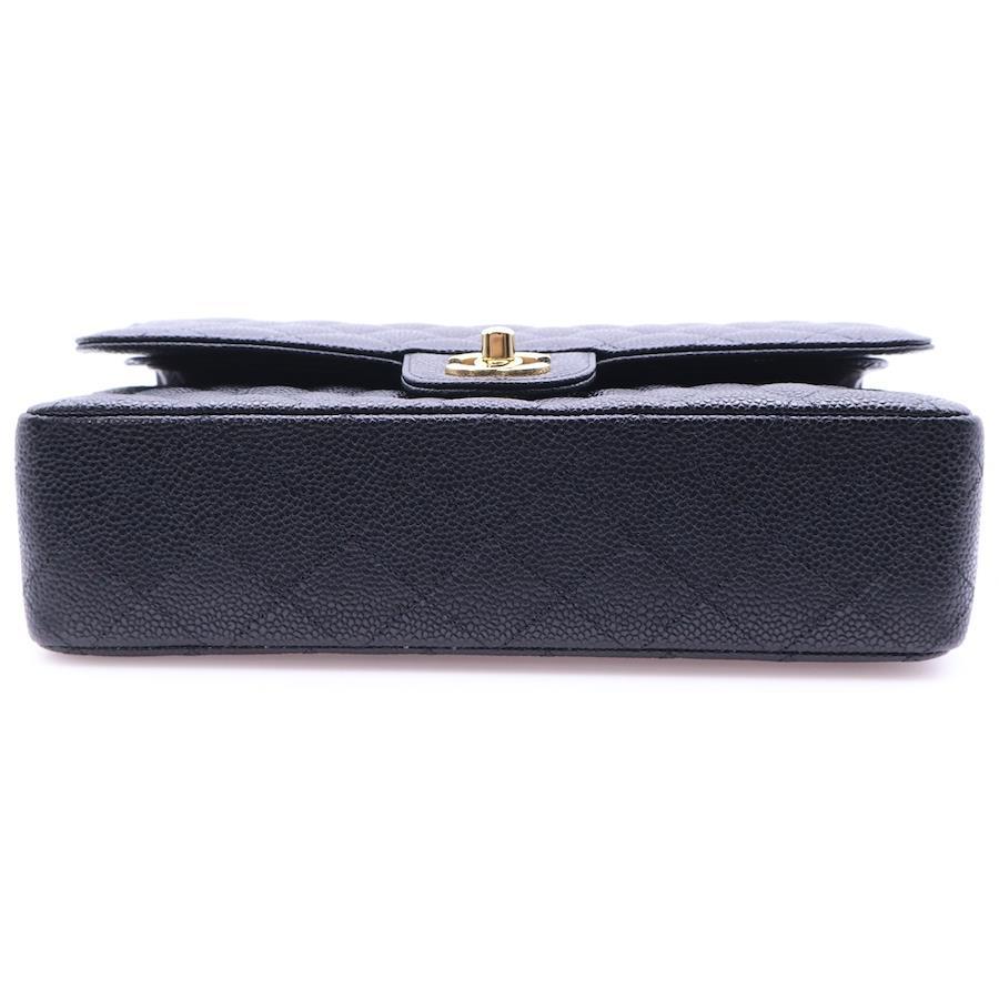 [モデル]マトラッセ25 ダブルフラップ ダブルチェーン ショルダーバッグ キャビアスキン ゴールド金具 ブラック プレートタイプ