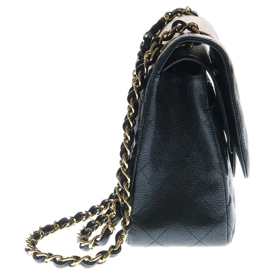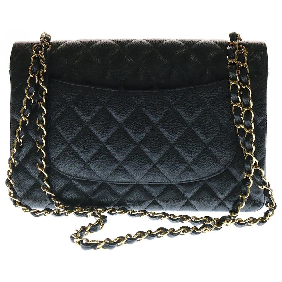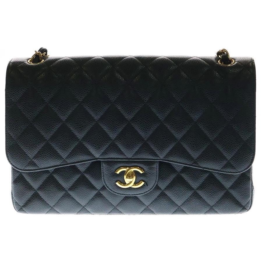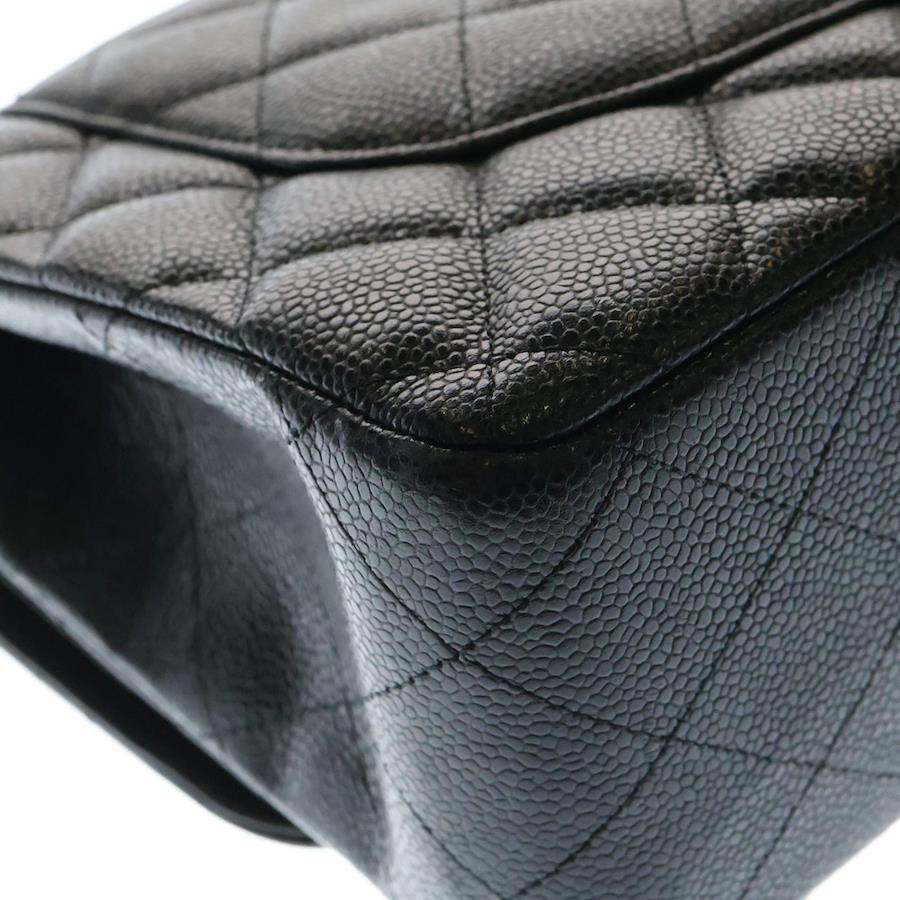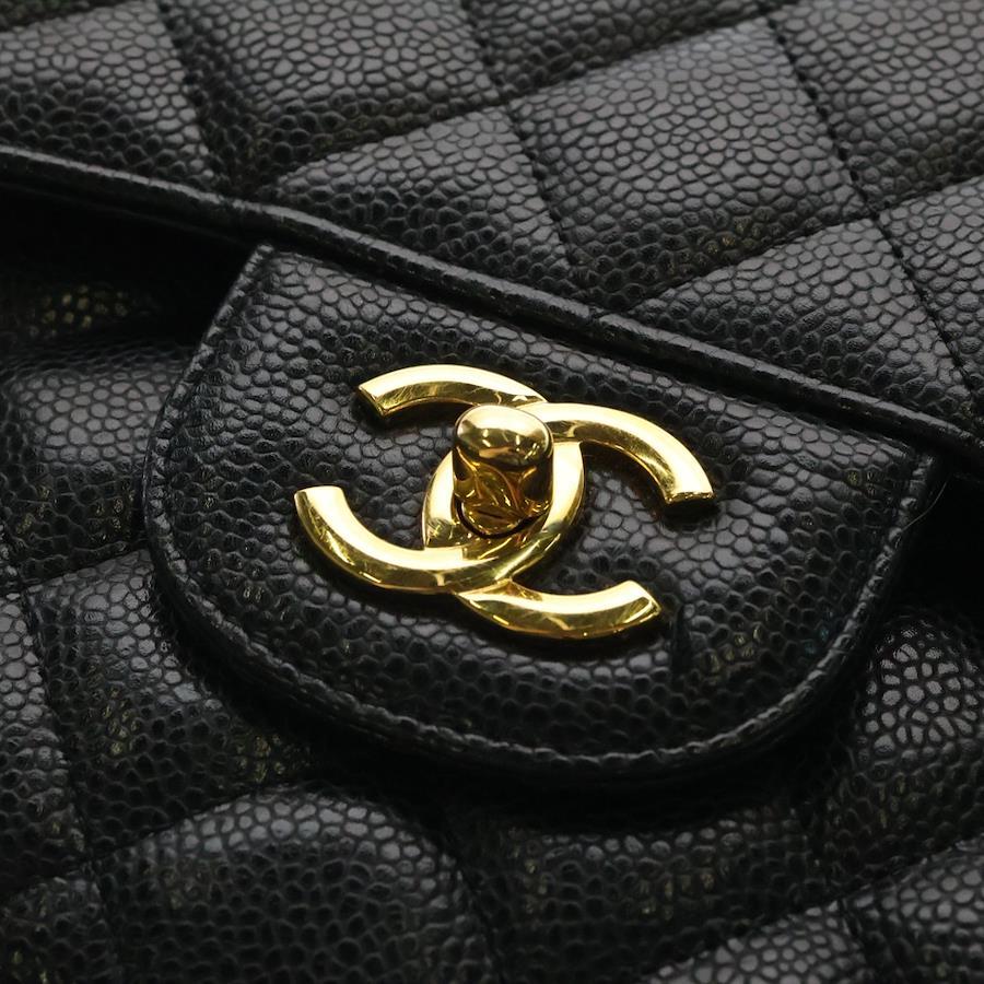 [モデル]マトラッセ30 デカマト キャビアスキン レザー Wフラップ ダブルチェーンショルダーバッグ ゴールド金具 ブラック 15番台