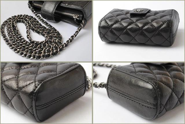 CHANEL チェーン マトラッセ レザー ブラック/シルバー金具