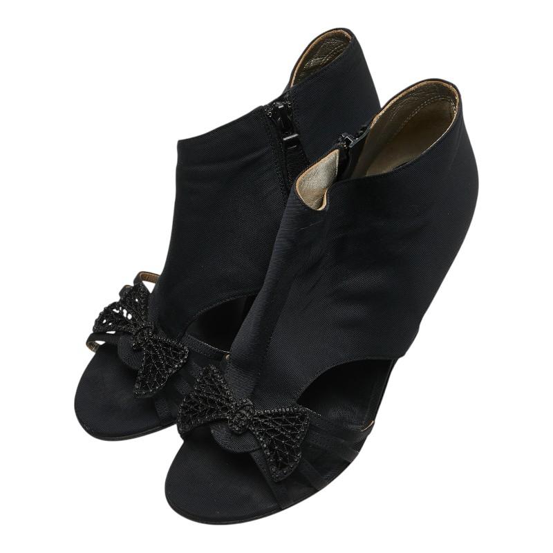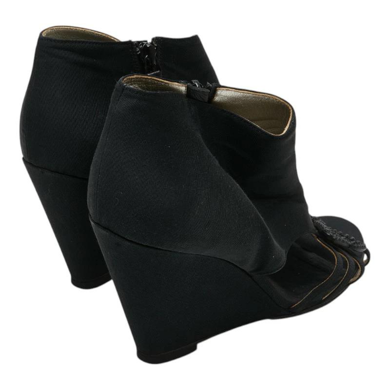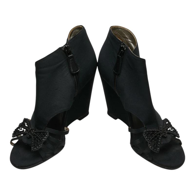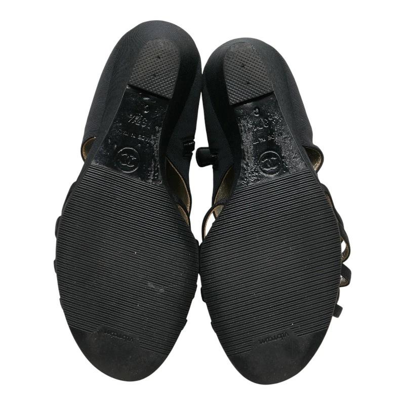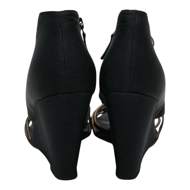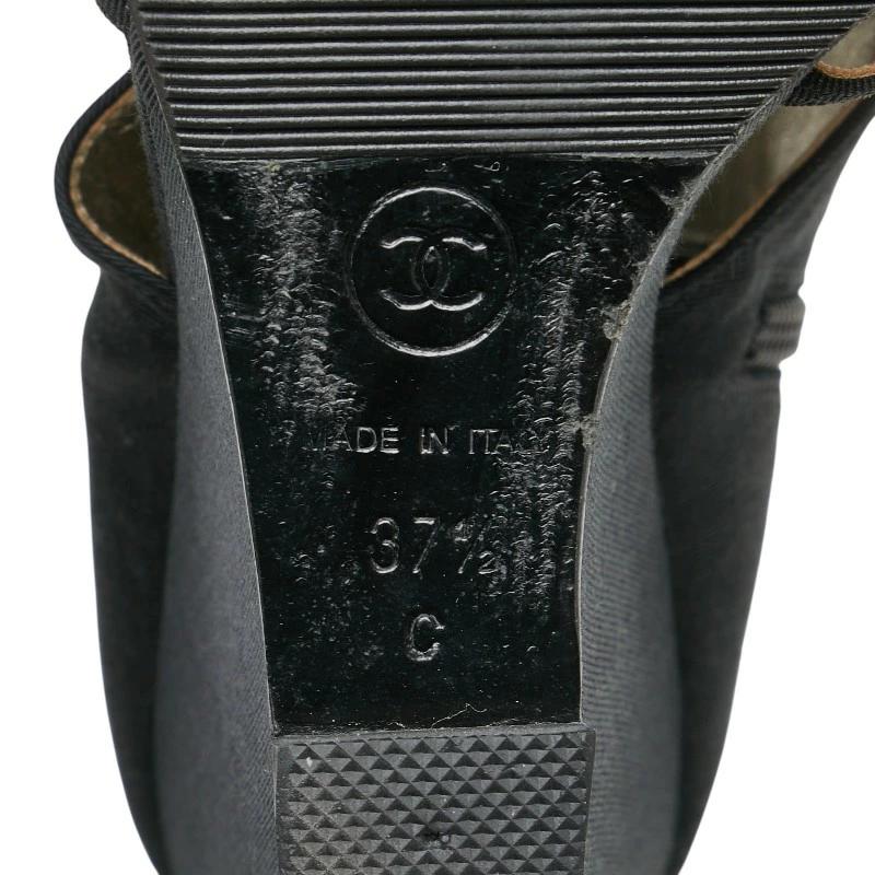 Pre-owned Chanel Ribbon Coco Mark Sandals, Wedge Sole, Size 37 1/2, Black Canvas and Leather, Women's.