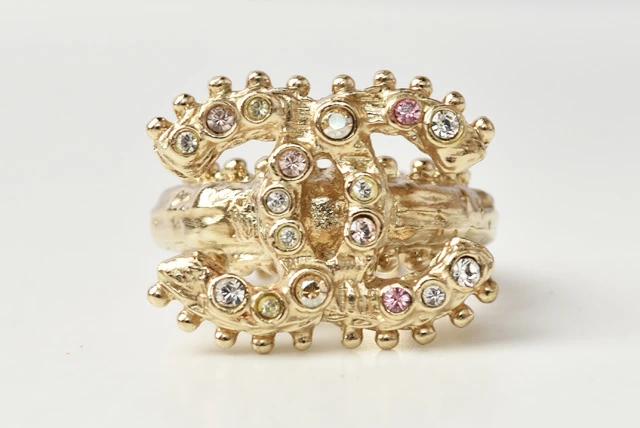 特徴 シャネルより、大き目のココマークがモチーフのリングで、存在感があります。ラインストーンが施されており、ゴージャスな印象です!