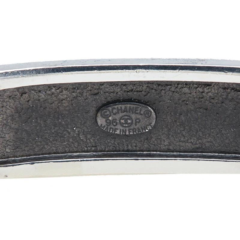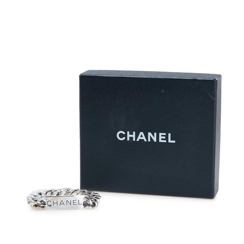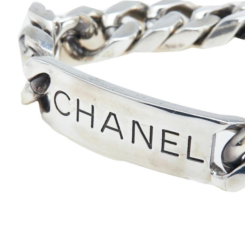 Pre-owned Chanel logo plate bracelet, silver metal, women's.