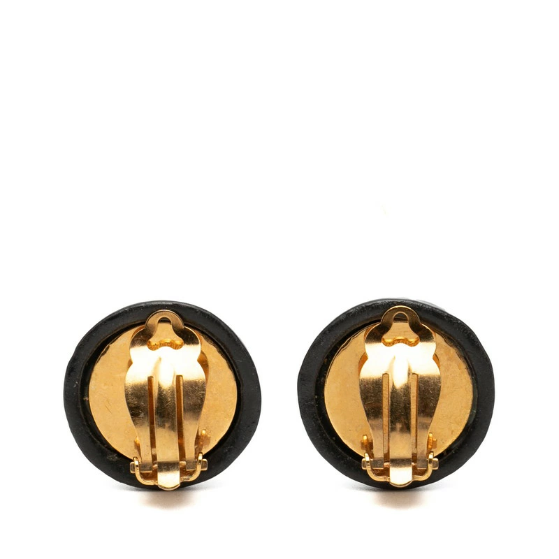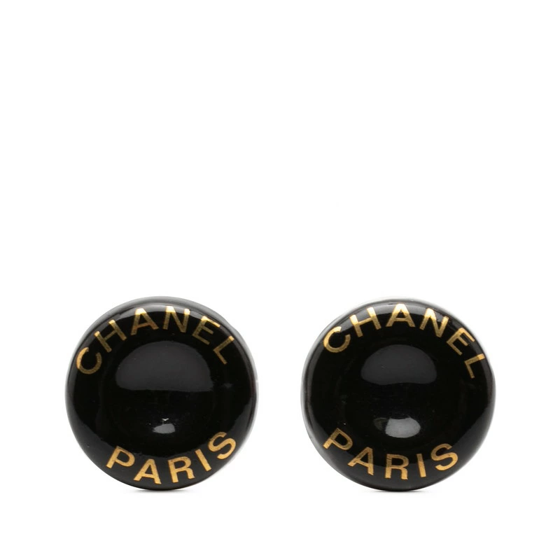 - シャネル ロゴ イヤリング ブラック ゴールド エナメル メタル レディース CHANEL 【中古】