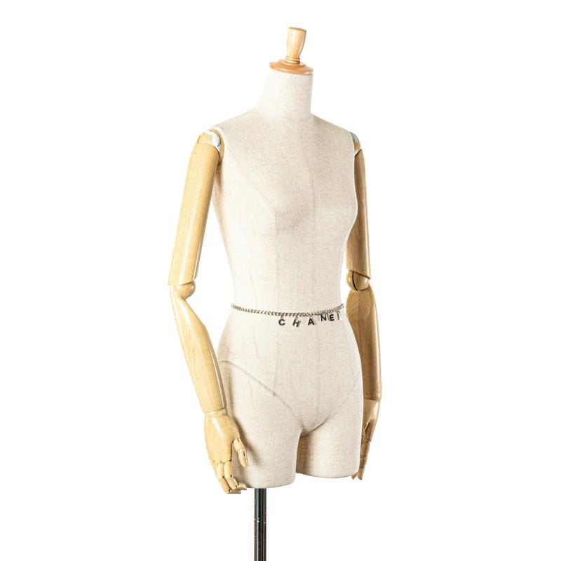 Pre-owned Chanel logo chain belt in silver metal for women.