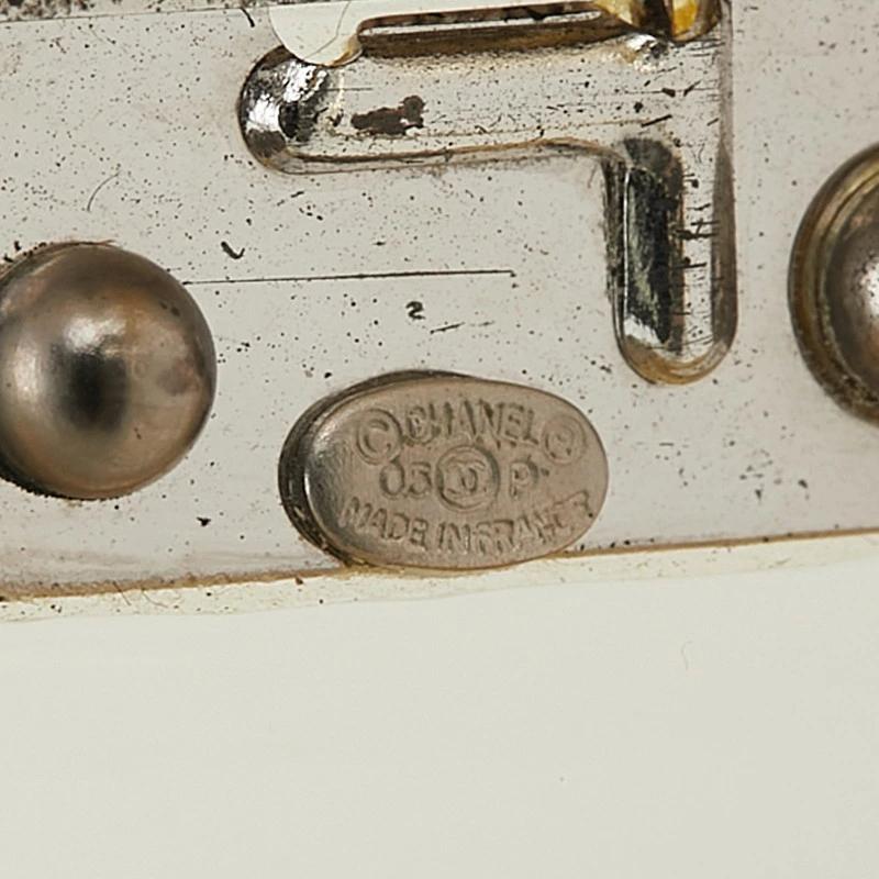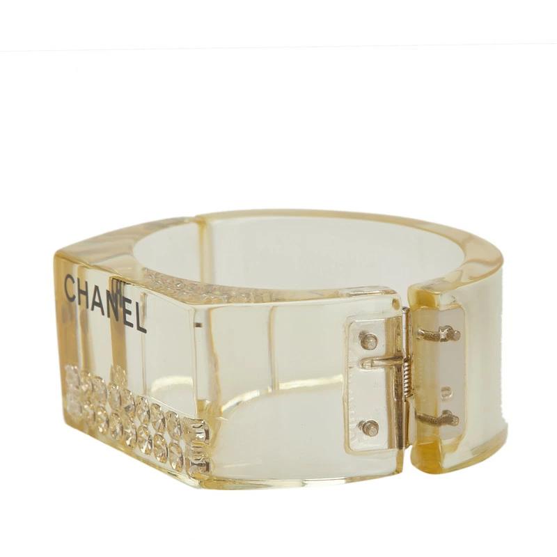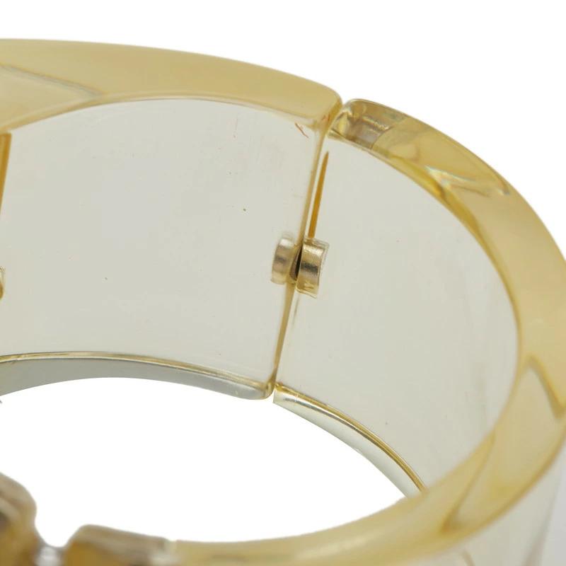 Pre-owned Chanel logo bangle in yellow, clear plastic, and rhinestones.