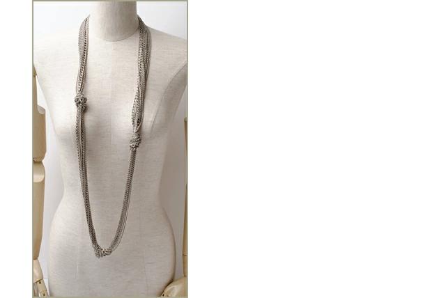 シャネルより、チェーンがモチーフのネックレスです。アンティーク調ココマークが、結び付けられて様なデザインで、高級感が漂います。大小さまざまなチェーンが幾重にもなり、程よい重厚感とともにゴージャスな印象に。フォーマルから、ワンピース、パーティーシーンなどで、大活躍しそうです。