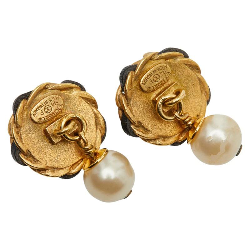 - シャネル ヴィンテージ カフス カフリンクス ゴールド ブラック フェイクパール メッキ レザー レディース CHANEL 【中古】