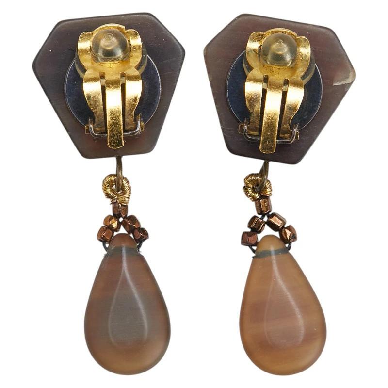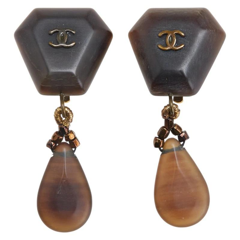 - シャネル ヴィンテージ イヤリング ブラウン ゴールド プラスチック メッキ レディース CHANEL 【中古】