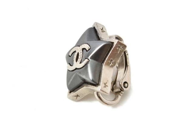 Pre-owned vintage Chanel earrings in gunmetal/silver with star motif.