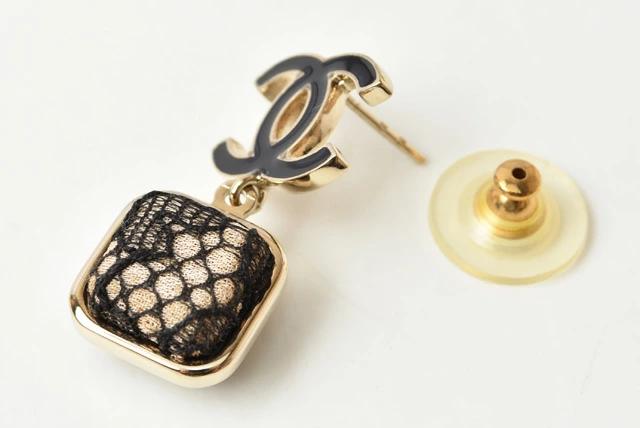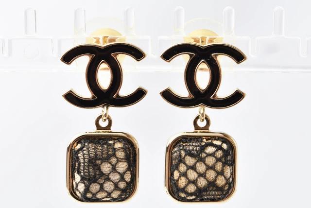 CHANEL ピアス ココマーク スクエア/レース ブラック/ゴールド