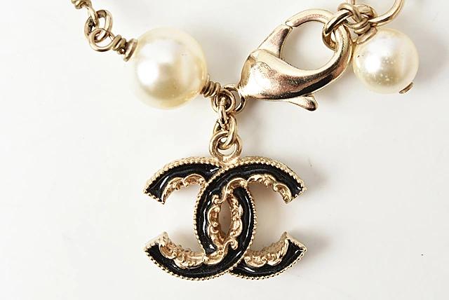 特徴 シャネルより、ココマークがモチーフのブレスレットです。フェイクパールが連なるゴージャスなブレスレット。