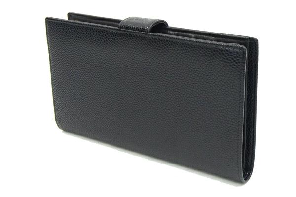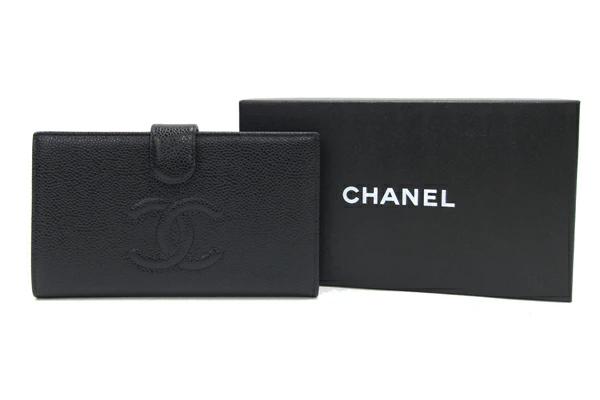 Pre-owned Chanel bi-fold clasp long wallet, Coco Mark, A13498, black caviar leather, women's.