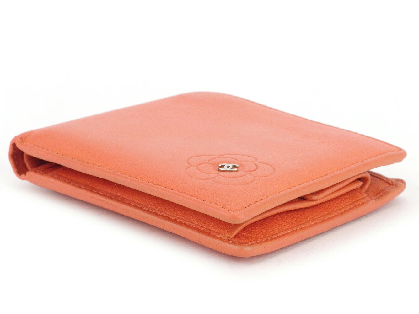 [24% OFF Coupon] Chanel Camellia Bifold Wallet with Coco Mark, Salmon Pink and Silver, Women's, Pre-owned, CHANEL