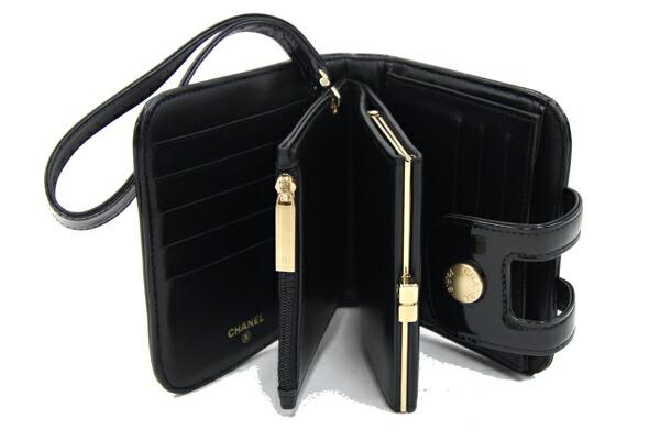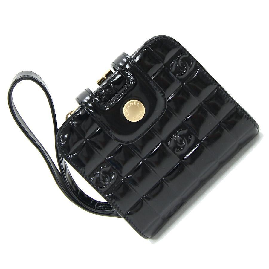 シャネル二つ折り財布チョコバーブラックパテントレザー中古コンパクトウォレットココマーク黒レディースヴィンテージオールドクラシックレアCHANEL