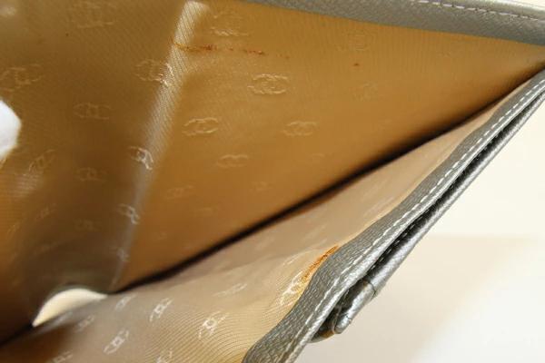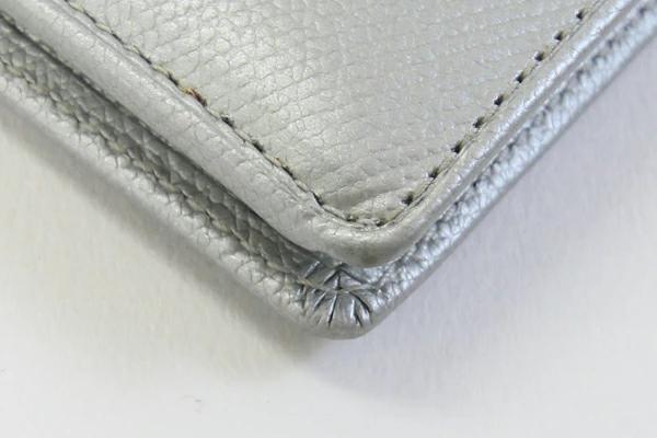 | 状態 | 外側:僅かに薄スレあり。角に薄スレあり。 内側:ポケットのフチ、札入れにボンド汚れあり。小銭入れ、ポケット内に薄汚れあり。 金具:クスミあり。 |