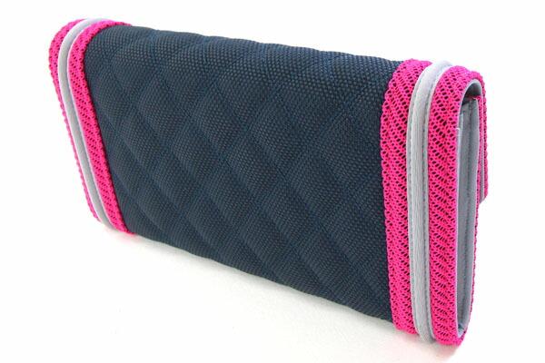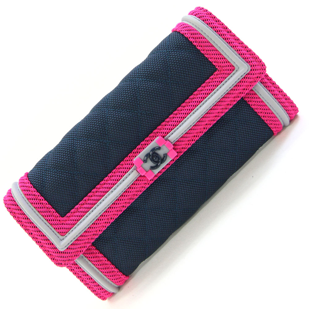 シャネル二つ折り長財布ボーイシャネルA80286ネイビーピンクグレーナイロンレザー中古ロングウォレットココマークレディースCHANEL