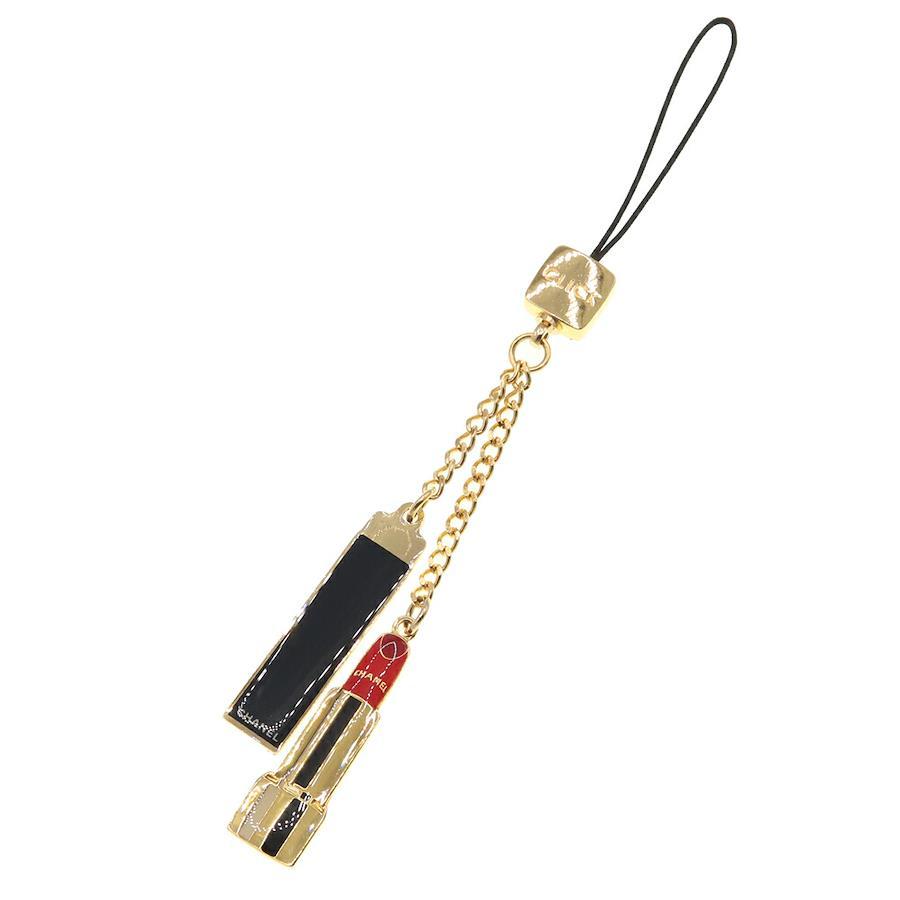 シャネル携帯ストラップリップモチーフゴールドブラックメタル中古レディースストラップスマホアクセサリーノベルティCHANEL