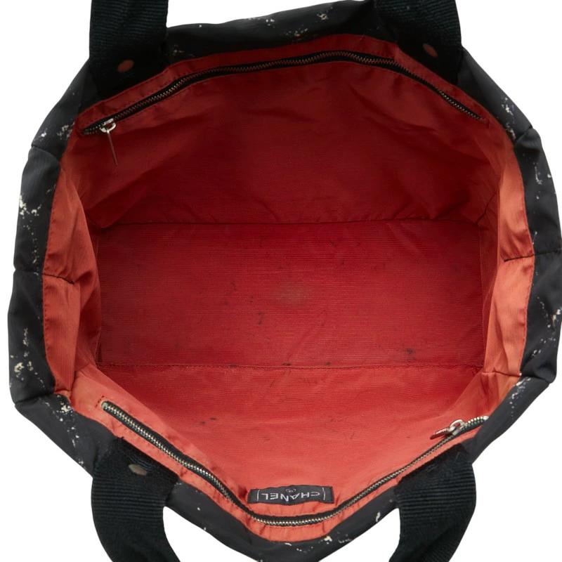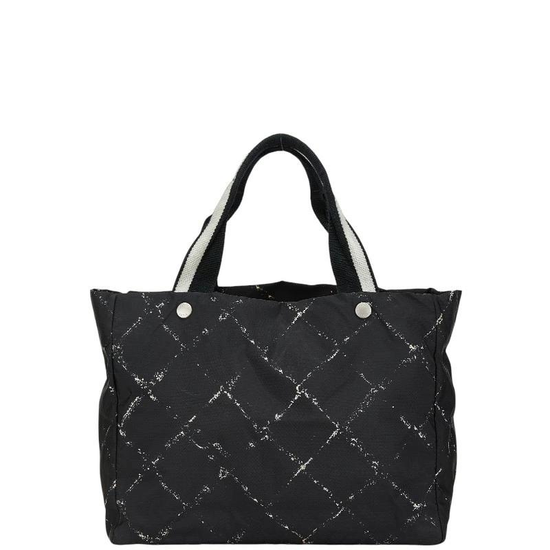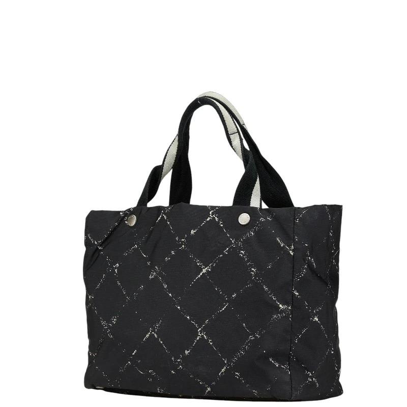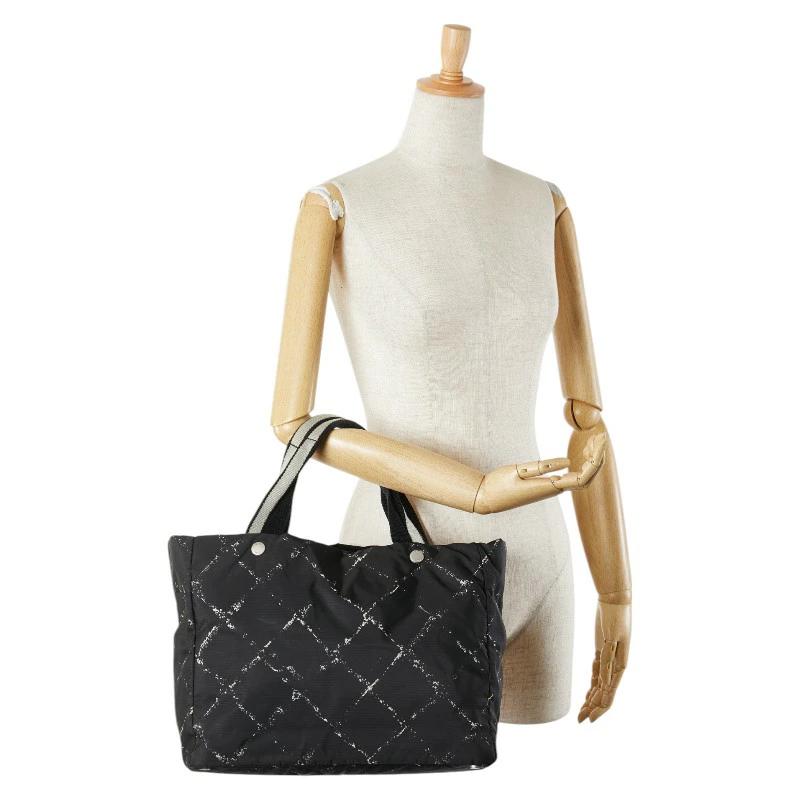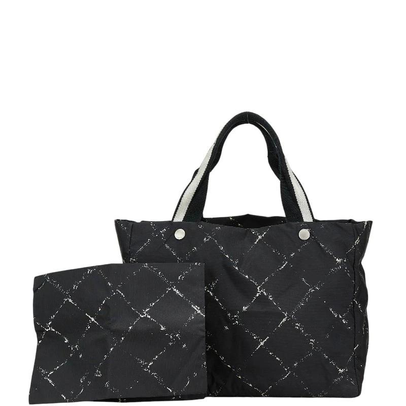 Pre-owned Chanel Travel Line Handbag Tote Bag in Black and White Nylon for Women.