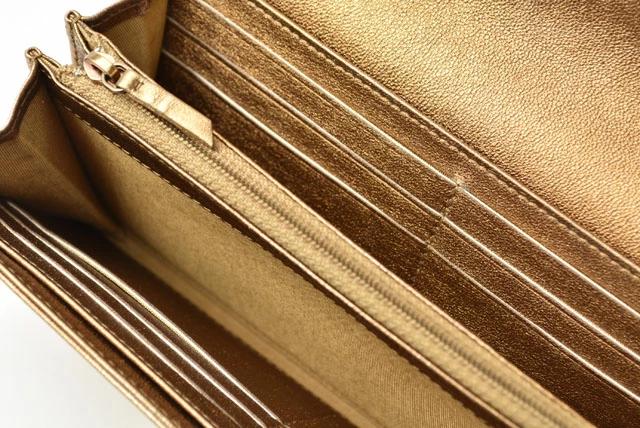 CHANEL 長財布 ダイヤモンドステッチ ココマーク ゴールド ラムスキン