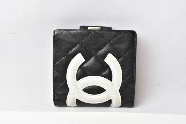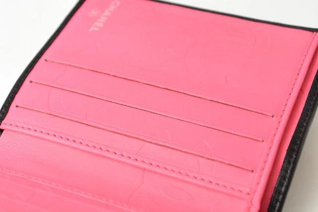 シャネルより、カンボン・ラインの折財布です。大変人気があり、入手困難。キルティングステッチ×CCマークの人気シリーズです。内側ピンクにもCCロゴが型押しされています。 コンパクトながら、ポケットも充実しており、すっきり整頓できます。