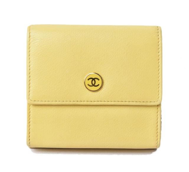 CHANEL 二つ折/折財布 A20902 ダブルホック ココマーク ライトイエロー