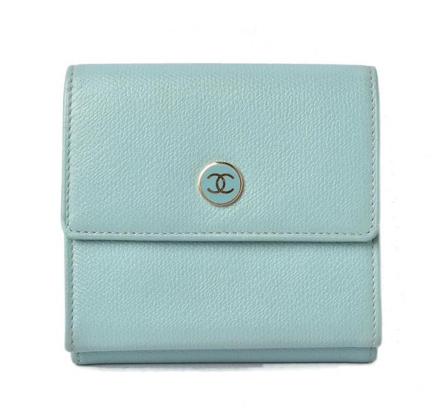 CHANEL 二つ折/折財布 A20902 ダブルホック ココマーク ライトブルー