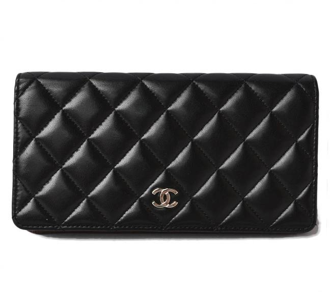 CHANEL 長財布 タイムレス・クラシック A31509 マトラッセ ラムスキン ブラック/ボルドー